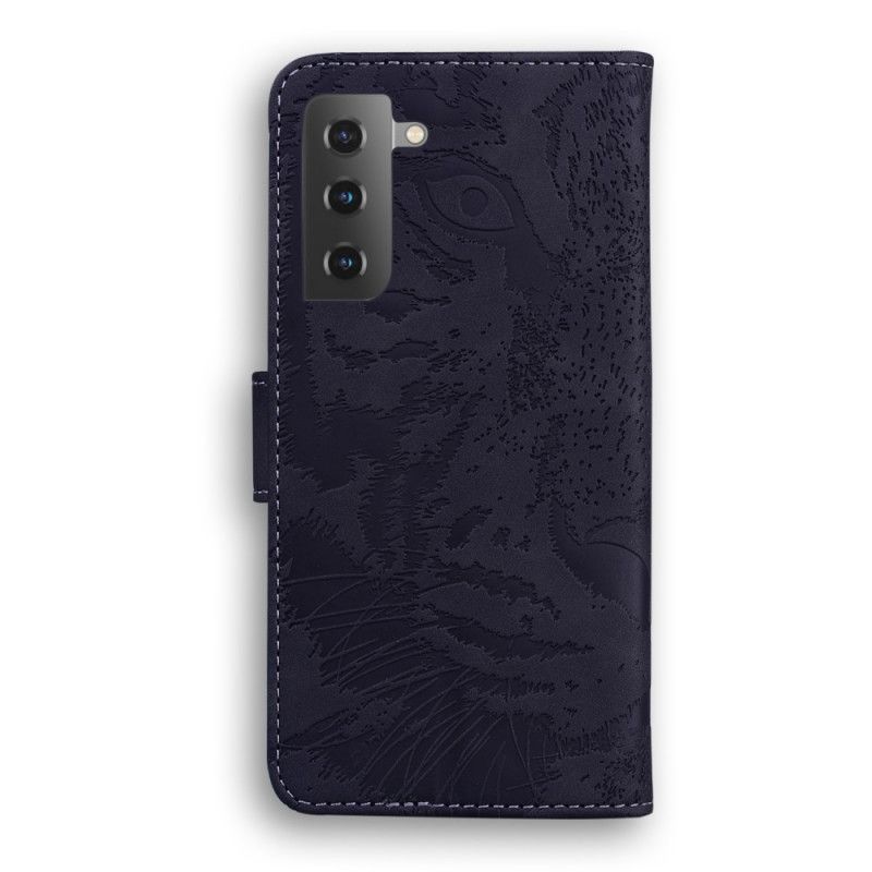 Protégez votre Samsung Galaxy S21 Plus 5G contre les intempéries avec cette housse en simili cuir Empreinte Face de Tigre.