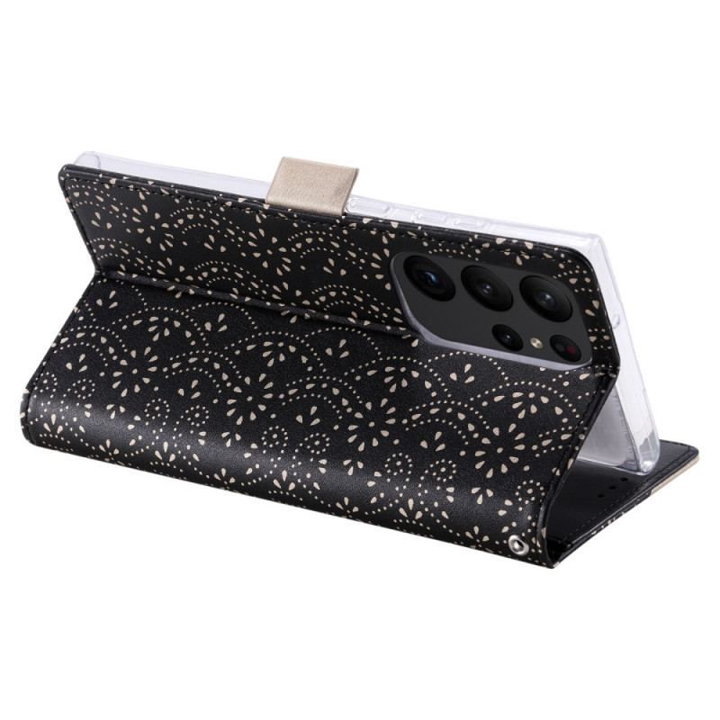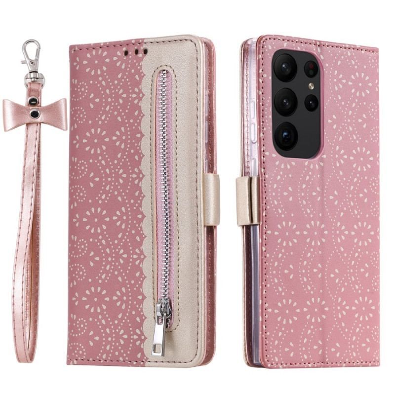 Housse Samsung Galaxy S23 Ultra 5G Dentelle Porte-Monnaie à Lanière