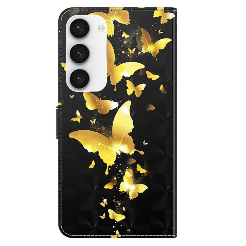 Une housse de téléphone élégante pour le Samsung Galaxy S24 5G, présentant un motif distinctif de papillons dorés.