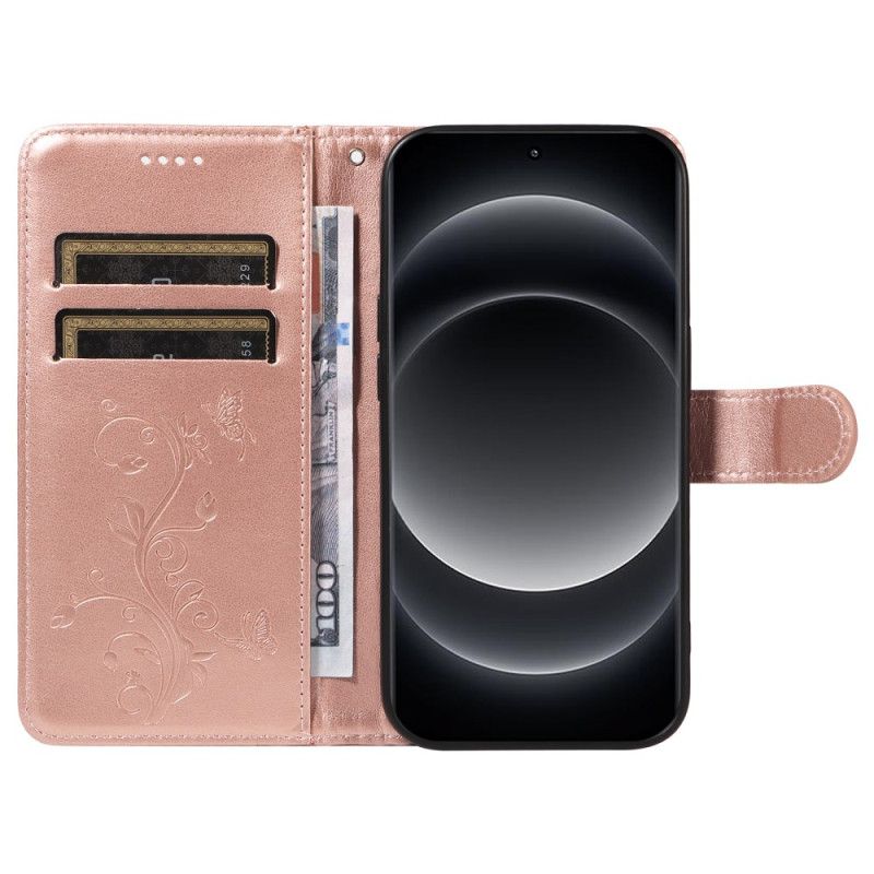 Housse Xiaomi 14 Fleurs et Papillons à Lanière