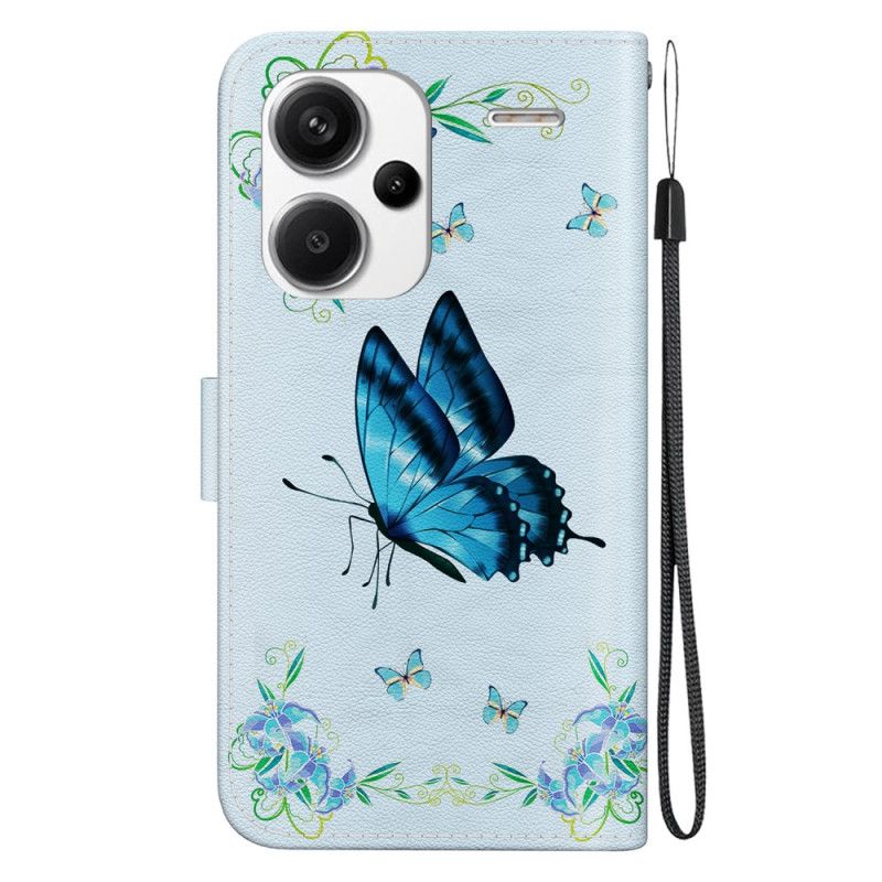 Découvrez notre housse pour Xiaomi Redmi Note 13 Pro Plus 5G, avec un motif de papillon et de fleurs bleus.
