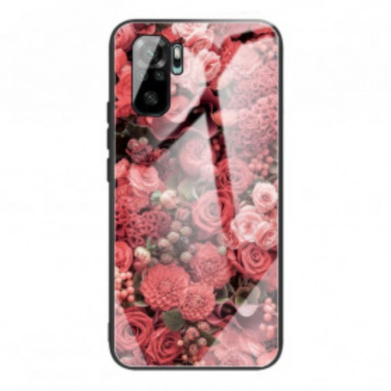 Coque Xiaomi Redmi Note 10/10S/Poco M5s Verre trempé Fleurs Roses